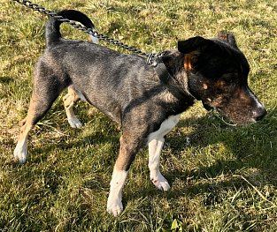 Mladý kříženec, který potřebuje sistematické vedení a výcvik. Je to hodný pes, který však potřebuje zkušenějšího majitele, psík prochází obdobím, kdy přemýšlí, zda bude poslouchat nebo raději ne, kdy uvažuje jestli bude nebo nebude mít rád cizí psy. Při pravidelné práci je s ním radost makat!!!
